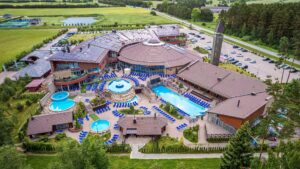 „Atostogų parkas“ – tai didžiausias poilsio ir sveikatinimo kompleksas Vakarų Lietuvoje, kuriame – 16 baseinų ir 7 pirtys Jūsų poilsiui ir sveikatai.Kompleksas įsikūręs Palangos pakraštyje, Žibininkuose. Tai – strategiškai puikioje vietoje esantis gamtos prieglobstis, nuo Baltijos jūros ir Palangos kurorto nutolęs 6 km, nuo uostamiesčio Klaipėdos – 30 km.Komplekse kviečiama mėgautis vandens pramogomis, unikaliomis pirčių programomis, SPA, sveikatinimo ir gydymo procedūromis, apsistoti viešbutyje ar miško apsuptyje esančiose rąstinėse vilose, mėgautis gardžiu restorano maistu, aktyviai leisti laiką padelio ir teniso kortuose.